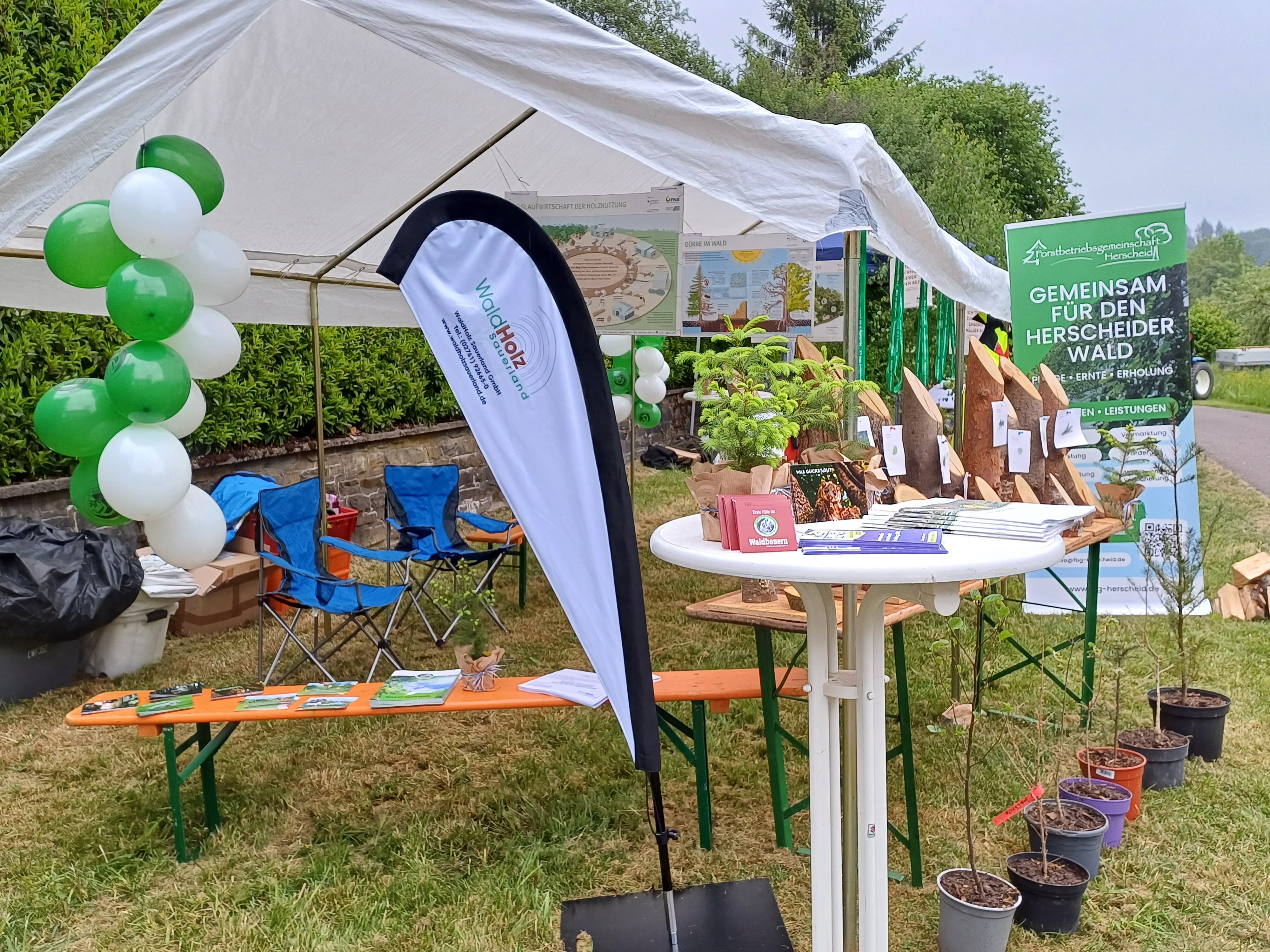 Der diesjährige Frühjahrsmarkt in Herscheid lockte bei strahlendem Sonnenschein zahlreiche Besucher in das Dorfzentrum. Auch die Forstbetriebsgemeinschaft Herscheid war mit einem eigenen Stand vertreten und präsentierte sich als kompetenter Partner rund um das Thema Wald.